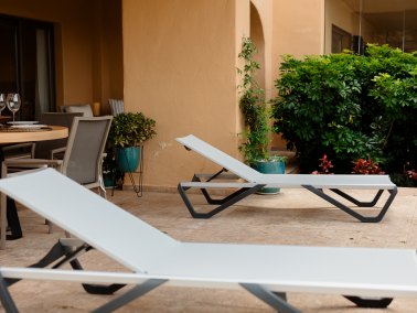 Por último, que no por ello menos importante, debemos hablar de la urbanización, y es que esta cuenta, nada más y nada menos que, con amplios jardines, con sombrillas y hamacas, donde tomar el sol de la costa, y con 4 piscinas exteriores (abiertas 09:00-21:00, durante la temporada de verana y sujeto a variación de disponibilidad) repartidas entre ellos, ¡una de ellas infinity pool y otra un jacuzzi!, además, esta última, con una pequeña cafetería abierta desde junio hasta finales de septiembre; porque sí, ¡queremos que usted tenga donde elegir! Y, como extras, WIFI y aire acondicionado, así como toallas y ropa de cama, además de cámaras de seguridad, integradas en toda la zona, para que usted, lejos de sentirse como en su casa, se sienta mucho mejor que en esta.