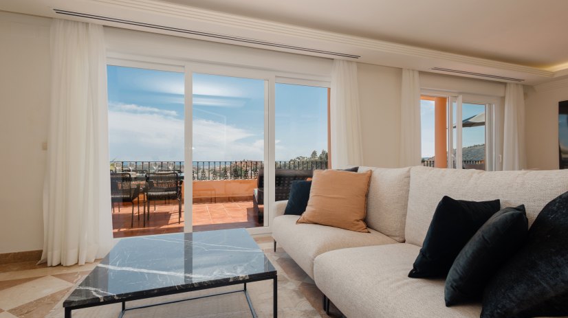 We present this magnificent duplex penthouse located in the prestigious Vista Real complex, one of the most exclusive and sought-after areas of Nueva Andalucía, Marbella. Surrounded by the best golf courses and just 5 minutes by car from Puerto Banús and 3 minutes from Aloha, this home combines elegance, modern design, and comfort, offering spectacular views of the Mediterranean Sea.
