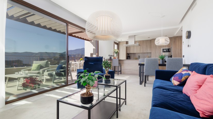 Descubra este amplio apartamento de nueva construcción en Almazara Hills, Istán, donde el diseño moderno y las vistas panorámicas se unen para ofrecerle una experiencia única. Este apartamento, con un total de 281 m² incluyendo 146 m² de terrazas, está diseñado para aquellos que buscan comodidad, unas vistas absolutamente impresionantes y una conexión directa con la naturaleza que le rodea.