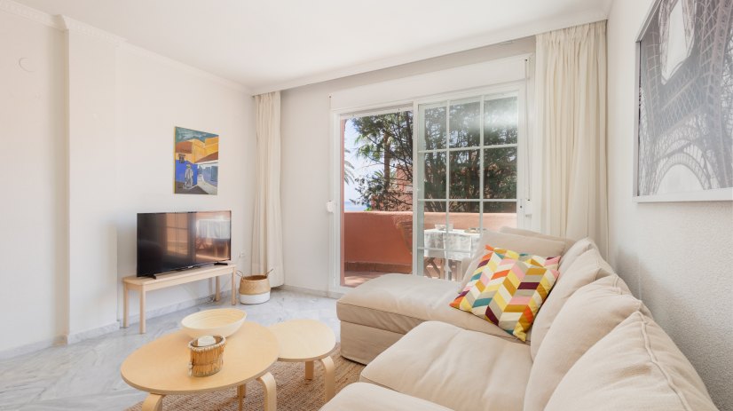 Apartamento de 2 dormitorios y 2 baños, ideal para 4 personas, ubicado en Costabella, a solo 10 minutos en coche del casco antiguo de Marbella y a 15 minutos de Puerto Banús. Esta propiedad moderna, situada en una tranquila urbanización, ofrece acceso directo a la playa a través de sus hermosos jardines comunitarios. Con múltiples opciones de restaurantes y supermercados a poca distancia, no necesitarás coche para disfrutar de unas vacaciones inolvidables.