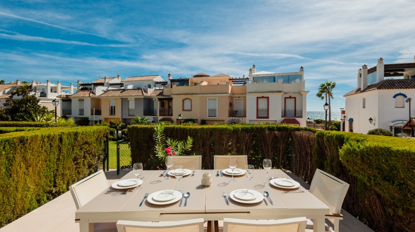 Our beautiful luxury beachfront townhouse with majestic sea views is just steps away from Los Monteros beach, an idyllic spot with fine golden sand — the ideal place for an unforgettable holiday. Thanks to its calm waters, this beach is perfect for a relaxing swim, even for the little ones due to its shallow depth and low waves.