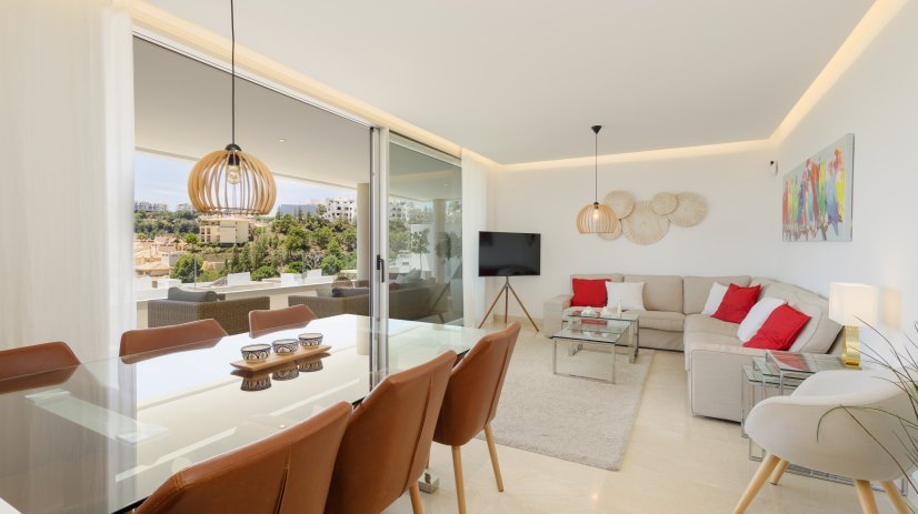 Modern apartment, with large private terrace, barbecue and panoramic sea views, in Residencial Botanic, Benahavis