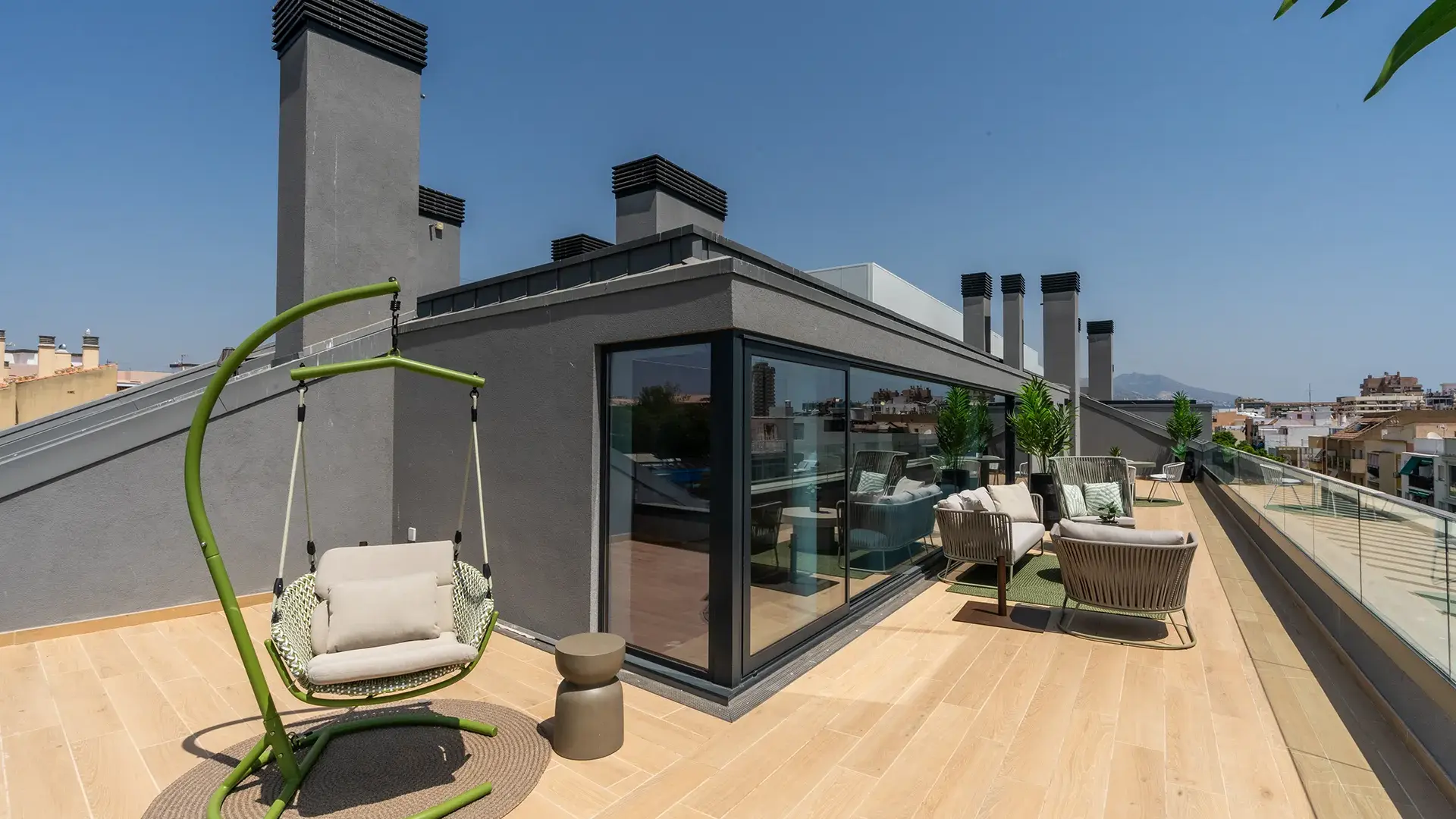 Edificio España acoge 33 apartamentos y áticos de lujo con el equipamiento más moderno y las mejores calidades del mercado. El proyecto es una moderna construcción diseñada por el prestigioso Estudio A-cero, a tan solo 350 metros del mar.